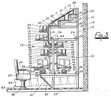 At first glance there doesn’t seem to be much in common between a vehicle store and a zigzag store design, but store patents document some principles that defined self-service stores as a distinctive store type. They all are designed to articulate shopping pathways. They represent compartmentalized spaces with controlled entry and exit. They experiment with different strategies for mobilizing merchandise. They used sensory retailing strategies to automate salesmanship.
