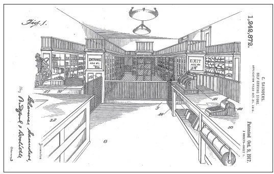 During the experimental phase of invention in the 1920s and 1930s, there were lots of different self-service store arrangements but whether they used conveyor belts, turntables, monorails, or market baskets they were all recognized as self-service stores. Only a few self-service stores were ever patented, but store patents offer important evidence of the design logic of their inventors. They document a wide variety of challenges for automating retailing and demonstrate some shared underlying principles that defined self-service stores as a distinctive store type.